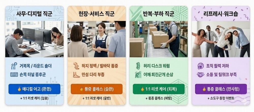 🛠️ 현장·서비스 직군: 통증 클래스 (현장형 교육) + 1:1 리셋 케어 (고위험군 관리)